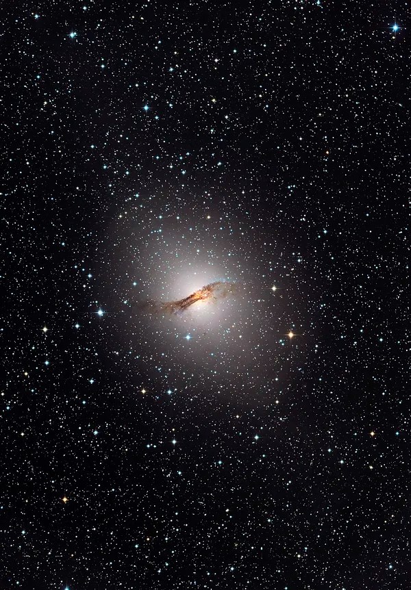 Elliptical galaxies: These galaxies are more spherical or football-shaped in appearance, lacking the spiral structure of spiral galaxies. They are composed mainly of old stars and contain little to no gas or dust. Elliptical galaxies range in size from relatively small dwarf galaxies to massive giant galaxies that can contain trillions of stars.
